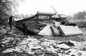 昨天,記者在北大未名湖湖心島東岸看到坍塌石舫的周圍已攔上圍欄,不許學(xué)生和游人進(jìn)入。此時(shí),工人們正在對石舫周邊的淤泥進(jìn)行清淤。石舫一端,頭部位置約一米多寬、一米長的石頭坍塌,從石舫上方看,有并排兩塊石頭掉落,從石舫正面觀察,有約兩米多的石頭已全部損毀(見圖)。