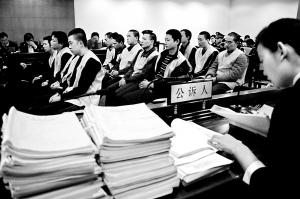 昨天8時50分,押送著黃偉、操雙全等13名犯罪分子的3輛警車陸續(xù)抵達(dá)海淀法院。 整個庭審持續(xù)了近2個小時,擺在公訴人面前的,是兩大摞犯罪嫌疑人的證據(jù)材料。記者數(shù)了數(shù),本案的起訴書就有25頁之多。在大量證據(jù)面前,所有犯罪嫌疑人均選擇認(rèn)罪。