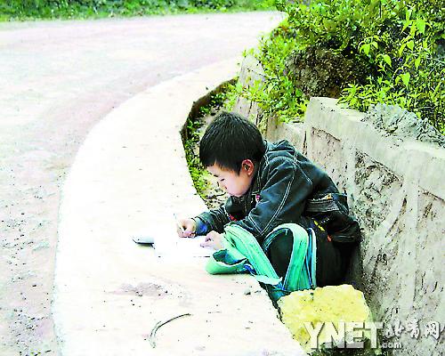一條蜿蜒崎嶇的鄉(xiāng)村公路邊,一名小男孩佝僂著身體,趴在水泥公路路沿上奮筆寫著作業(yè)。即便有車輛經(jīng)過(guò),他也不為所動(dòng),眉宇間透出的認(rèn)真勁,讓人無(wú)不為之動(dòng)容并心生別樣情愫。這是網(wǎng)友“情緣”3月26日在云陽(yáng)縣清水鄉(xiāng)一條鄉(xiāng)村公路拍到的動(dòng)人一幕。帖子發(fā)到網(wǎng)上,引起了網(wǎng)友對(duì)這名小男孩的生存狀況的關(guān)注。