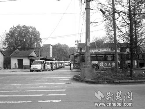 昨日下午3時許,記者來到位于江岸區(qū)諶家磯興諶大道特1號的湖北大學知行學院,幾臺電瓶車正整齊地排列學校后門前,旁邊還雜亂地停放著五輛微型面包車。 “走不走?還差一個,馬上就可以走了!币幻姘囁緳C從駕駛室里探出腦袋問著記者。記者上車發(fā)現(xiàn)里面還有5名學生乘客。付了一元的車費,司機發(fā)動車子。 4分鐘后,面包車在諶家磯大道嚴漢灣路口的公交站臺停下。學生們告訴記者,大多數(shù)師生出行會找“黑的”。而記者注意到,如果不乘坐“黑的”或電瓶車,則需要步行2公里左右才能到這個車站。