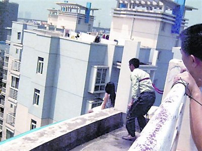 當(dāng)小女孩看見警察跑上樓頂,立即走到12樓住戶的雨陽棚上,哭喊著說:“不要過來!爆F(xiàn)場氣氛再次緊張起來。該所民警見狀,一邊后退,一邊安慰小女孩。分局副局長張?jiān)号c刑偵大隊(duì)長、辦公室、巡邏大隊(duì)、消防中隊(duì)、工人村派出所等負(fù)責(zé)人趕到現(xiàn)場,在另一棟樓樓頂成立現(xiàn)場指揮部。查看現(xiàn)場后,張?jiān)褐甘,若與女孩“ 談判”解救無果,則強(qiáng)行救援。