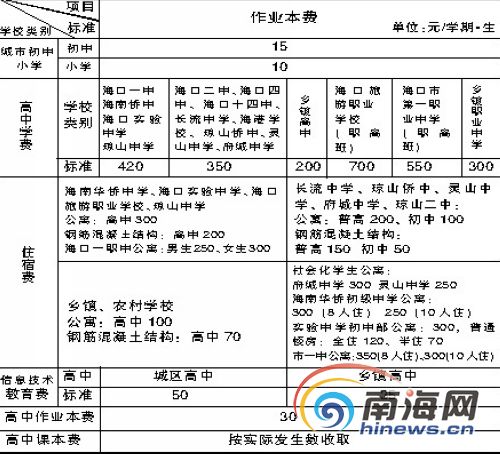 海口市物價局、財政局、教育局日前下發(fā)通知,明確了2009年春季海口市中小學(xué)校收費項目和標(biāo)準(zhǔn)。