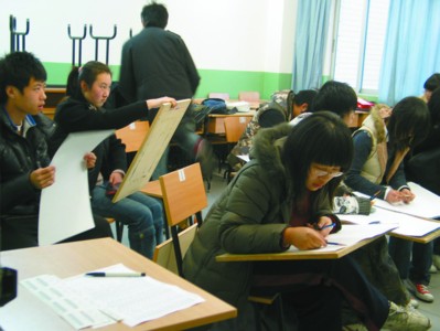 圖片說(shuō)明:學(xué)生們?cè)谶M(jìn)行美術(shù)專業(yè)考試