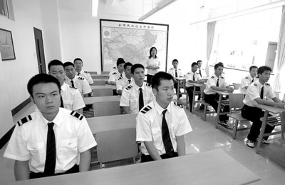 今年7月從高校畢業(yè)后,這38個年輕人懷揣制藥工程、土木工程、電子信息工程、經(jīng)濟管理等各種專業(yè)的學(xué)歷證書,和航空公司簽訂合同,成為公司一名員工,目前6個月的專業(yè)課程培訓(xùn)屬于試用期。每個月他們可以從公司領(lǐng)到兩三千元的薪水。不過他們不能隨便曠課,因為曠課就等于曠工。