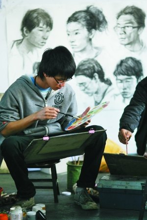 他認(rèn)為這種“升大班”最大的好處在于營(yíng)造了學(xué)習(xí)的氛圍,打破思想僵局,他說(shuō):“在家鄉(xiāng)學(xué)習(xí),始終跟著老師一筆一畫地畫,很容易形成思維定勢(shì)。升大班里有來(lái)自不同地方的考生,能吸取別人的長(zhǎng)處!