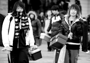 昨天8時,北京城市學(xué)院考點前已擁擠著近百名冒著嚴(yán)寒陪考的家長,一些手提畫板、顏料盒等繪畫用具的考生陸續(xù)走進考點。據(jù)了解,網(wǎng)上報考美術(shù)類專業(yè)的考生為7130人。首都師范大學(xué)、北京工業(yè)大學(xué)、北京服裝學(xué)院、北京城市學(xué)院4所高校設(shè)有考場。