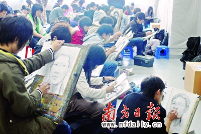 據(jù)介紹,今年報考美術(shù)類的考生有2.8萬人,比去年增加了5000多人,增幅達(dá)21.1%;報考音樂類的考生為8100多人,比去年增加了1400多人,增幅約為18.9%。省教育考試院有關(guān)負(fù)責(zé)人介紹,為了應(yīng)對增加的5000多名考生,廣東臨時啟用已不做聯(lián)考考點(diǎn)8年的廣州美術(shù)學(xué)院作為今年美術(shù)術(shù)科考試的第六個考場,分流了3325名考生。