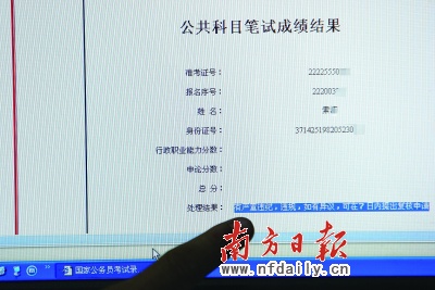 本報(bào)訊(記者/馬喜生張迪)2009年1月9日中央國(guó)家機(jī)關(guān)公務(wù)員考試成績(jī)公布,廣東考生易長(zhǎng)安通過(guò)短信查詢成績(jī)時(shí),收到的回復(fù)卻是“您本次考試有違紀(jì)行為”,行政職業(yè)能力測(cè)試0分,申論51分。同一天,吉林某大學(xué)研究生王藝(化名)通過(guò)網(wǎng)上查分也被告知“ 嚴(yán)重違紀(jì)”,行政職業(yè)能力測(cè)試也為0分。