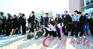 參加招聘會的大學(xué)生排成長隊! 『 攝