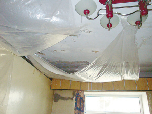 昨天,記者在道里區(qū)安道街34號(hào)3單元8樓的董先生家看到,臥室的電燈因?yàn)槲蓓斅┧畬?dǎo)致短路,已經(jīng)被迫拆除,屋內(nèi)大部分天棚已經(jīng)被雨水浸濕,墻皮出現(xiàn)脫落。據(jù)介紹,他們的房子是公產(chǎn),1986年進(jìn)戶(hù)后出現(xiàn)漏雨,至今15年了,每逢開(kāi)春屋頂積雪融化時(shí)漏得更為嚴(yán)重,找到房管站也沒(méi)有人來(lái)管,或者稱(chēng)由住戶(hù)拿材料和人工費(fèi),他們幫忙修。當(dāng)記者找到了負(fù)責(zé)該房產(chǎn)的安隆房管站,工作人員答復(fù):公司不讓他們接受采訪(fǎng),現(xiàn)在公司也在維修。