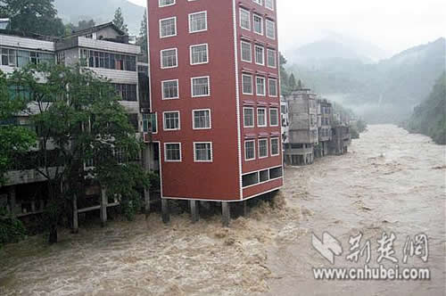 7月13日,有網(wǎng)友向記者反映,恩施州鶴峰縣鐵爐鄉(xiāng)有人把房子建到了河道中,眼下正是主汛期,看著十分揪心。從該網(wǎng)友發(fā)來的照片上可以看到,一幢7層的樓房直接建在了河道當中,與周圍兩棟4層白色建筑形成了鮮明的對比,顯得十分突兀。照片里,湍急的河水急速地沖刷著這棟違建房的支柱,水流幾乎沖到了房子的底板上。
