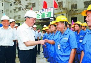 李克強來到正在建設(shè)中的管莊保障性住房項目,看望并慰問一線建筑工人、技術(shù)人員和管理人員,鼓勵他們精心施工、把好質(zhì)量關(guān),把這一重大民生工程建設(shè)好,讓群眾住得安心、舒心。遠洋地產(chǎn)行政總裁李明在現(xiàn)場向李克強匯報了項目進展情況。
