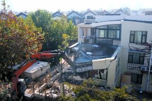 昨日,亦莊一棟洋房社區(qū)內(nèi)一棟別墅的違建部分被城管部門(mén)強(qiáng)拆。本報(bào)記者 吳江 攝