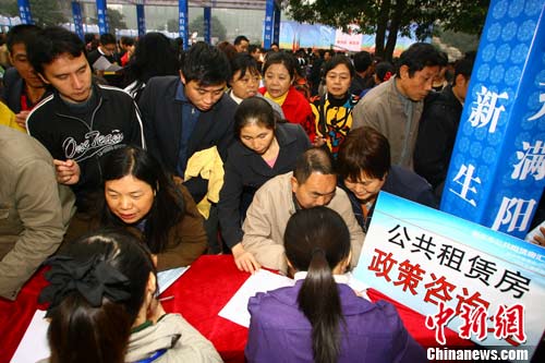 和章程福夫婦情況相仿的數(shù)百名農(nóng)民工把公租房咨詢點圍成里三層、外三層,小小的咨詢點幾乎要被擠爆。咨詢點工作人員介紹,重慶“民心佳園”公租房正在醞釀?wù)酵瞥,不少農(nóng)民工前來詢問其租金和申請流程。咨詢點向農(nóng)民工發(fā)放的公租房宣傳資料上稱,重慶公租房的租金初步定為市場租金的60%,個人收入在2000元以下的人即可申請,申請者不受戶籍限制。