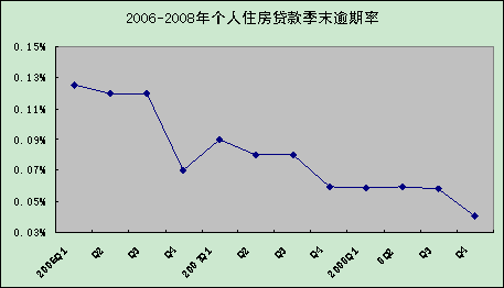 2008年末,全國個人貸款逾期余額為2.47億元,平均逾期率為0.04%,同比下降0.02個百分點(diǎn)。