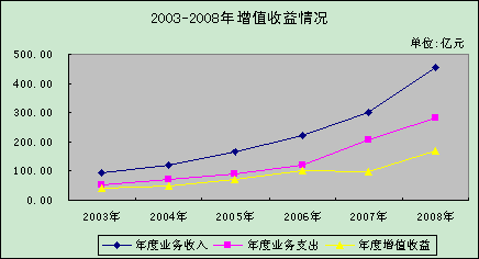2008年業(yè)務(wù)收入為453.56億元,同比增加152.67億元,增幅為50.74%。業(yè)務(wù)支出為283.46億元,同比增加78.48億元,增幅為38.29%。增值收益為170.10億元,同比增加70.49億元,增幅為70.77%。年末貸款風(fēng)險準(zhǔn)備金余額為285.67億元,占貸款余額的4.68%;年末城市廉租住房建設(shè)補(bǔ)充資金總額為191.93億元,按規(guī)定累計向同級財政上繳96.98億元。