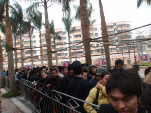 剛來海南不久的吳先生排隊拿號似乎很有經(jīng)驗。他跟幾個朋友提前幾天就聯(lián)系好了幾名農民工“排隊”。每個農民工200元,從18日晚七八點鐘開始排,排到第二天早上七八點,再來換班親自排隊。盡管如此,吳先生也郁悶不已。原本他以為自己排在比較靠前的位置,但開盤前時,開發(fā)商打開第一道門,里面已經(jīng)排著六七十個人了。