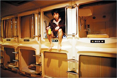 受金融危機(jī)傷害,日本大城市不少失業(yè)或面臨失業(yè)的“蟻?zhàn)濉辈坏貌蝗胱≈荒軝M著爬進(jìn)去的“蝸居”——“膠囊旅社”。