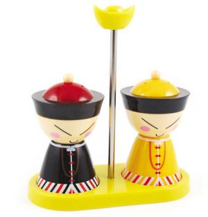 又該做飯了,每天面對(duì)鍋碗瓢盆的“交響曲”,最好能給廚房添點(diǎn)亮色來增加生活的情趣。這是一款古代古代主題加現(xiàn)代風(fēng)格的調(diào)味瓶,兩個(gè)小人都是調(diào)味瓶,帽子是蓋子,可旋轉(zhuǎn)打開,可分別放入不同的調(diào)味品。放入家中,絕對(duì)是一款精美的實(shí)用品、裝飾品。