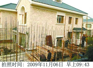 李先生的鄰居是被稱為億萬富翁的孫寅貴,正要蓋個下沉式花園!盎油诘轿壹以郝湎旅妫瑑蓷澐孔釉揪嚯x10米,現(xiàn)在只有4米多,別墅一旦擴建完,將嚴重影響我家的采光和通風。”李先生說,他多次要求孫寅貴立即停止在兩棟別墅之間建房,但對方置之不理。