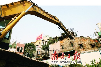 昨天,荔灣區(qū)城管分局依法對(duì)該房屋實(shí)施行政強(qiáng)制拆遷。令記者詫異的是,先前已搬走住戶的房屋仍被出租給附近商戶作為服裝倉(cāng)庫(kù)。執(zhí)法人員在公證人員的見證下,將住戶財(cái)產(chǎn)在室外封裝后搬到芳村金通街的安置房?jī)?nèi)。工作人員表示,安置房屋鑰匙已交到吳偉業(yè)手中。在再三確認(rèn)安全后,工作人員啟動(dòng)鉤機(jī),墻壁逐漸倒下,只用了10多分鐘,這座房子即被全部拆除。