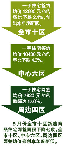 5月份網(wǎng)簽量跌三成價跌2.4% 周均價一個月跌去3273元/m2