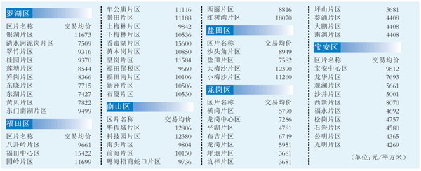 昨天(11月5日),深圳市國土房產(chǎn)局首次公布我市56個(gè)片區(qū)普通商品房交易均價(jià)。福田、南山集中了全市最多的高價(jià)片區(qū)。紅樹灣片區(qū)、香蜜湖片區(qū)、福田中心區(qū)位列全市普通商品房房價(jià)前三甲。今年3月15日頒布實(shí)施的《深圳市公共基礎(chǔ)設(shè)施建設(shè)項(xiàng)目房屋拆遷管理辦法》第三十三條規(guī)定,我市各區(qū)域商品房交易均價(jià)由國土房產(chǎn)部門每季度定期公布。