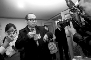來(lái)自崇文團(tuán)的潘石屹代表是首次當(dāng)選市人大代表。昨天早上9點(diǎn),已有不少記者守候在五洲大酒店的門(mén)口專門(mén)等待這位知名商界人物。10點(diǎn),潘石屹代表自己背著雙肩背包前來(lái)報(bào)到,剛一亮相鎂光燈就閃成一片!拔襾(lái)晚了吧!钡谝淮萎(dāng)選代表的總裁卻顯得有點(diǎn)局促不安。