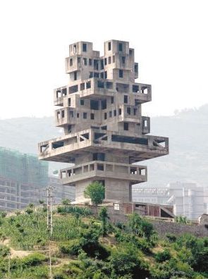 在電影《三峽好人》中,影片結(jié)尾部分有一個異化的火箭升空,火箭主體就是奉節(jié)縣“華字塔”,這個塔由于成為爛尾工程,最近被炸毀拆掉。