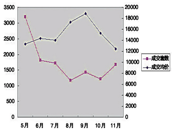 根據(jù)杭州透明售房網(wǎng)銷售記錄統(tǒng)計,11月杭州主城區(qū)共成交商品房1677套,成交均價12467元/平方米。這是杭州9月份萬科降價風后,成交量最高的一個月。從漢嘉地產(chǎn)提供的今年5月至今杭州主城區(qū)商品房每月成交統(tǒng)計數(shù)據(jù)來看,這樣的成交量是今年5月的一半左右,和7月成交量接近。