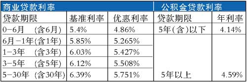 目前,中國人民銀行規(guī)定的金融機構(gòu)一年期貸款基準利率為5.85%。同時允許商業(yè)銀行在基準利率的基礎(chǔ)上最多向下浮動10%。而建設(shè)部規(guī)定的個人住房公積金貸款利率為:5年(含)以下年利率4.14%;5年以上貸款年利率4.59%。(見下表)