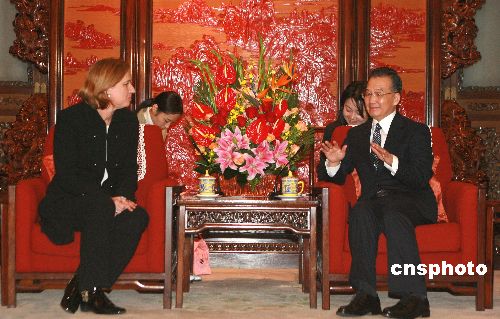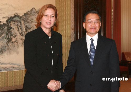 十月三十日,中國(guó)國(guó)務(wù)院總理溫家寶在北京中南海紫光閣會(huì)見(jiàn)以色列第一副總理兼外交部長(zhǎng)齊皮·利夫尼。中新社發(fā) 廖文靜 攝