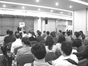 拍賣師萬(wàn)華介紹,今年拍賣會(huì)的火熱與去年的冷清場(chǎng)面形成鮮明對(duì)比。在去年樓市低迷時(shí)期,拍賣現(xiàn)場(chǎng)常常只零散地坐著10多個(gè)競(jìng)買人,經(jīng)常有房產(chǎn)因參與競(jìng)拍人數(shù)不足兩人而流拍,只有進(jìn)行多次調(diào)價(jià)多次拍賣,還有許多房產(chǎn)無(wú)人競(jìng)價(jià)而以底價(jià)成交,即使有人競(jìng)買也是寥寥數(shù)人。到拍賣后半場(chǎng),由于有人提前離場(chǎng),稀稀拉拉的幾個(gè)人,也再?zèng)]舉牌熱情。