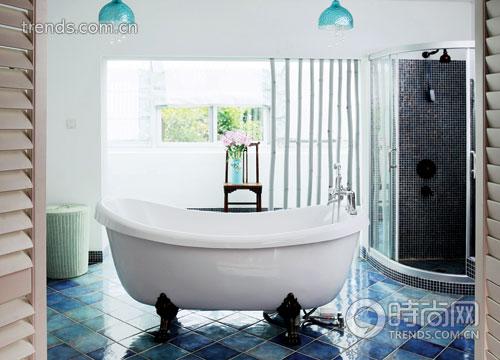 細(xì)節(jié)是小米比較關(guān)注的。主浴室兼顧了清潔與休閑兩個(gè)功能,地面是湛藍(lán)湛藍(lán)的光面磚,白色的墻身,延續(xù)著地中海的藍(lán)與白,“因?yàn)樵∈易钪匾墓δ苁欠潘,所以選擇的色系盡量簡(jiǎn)單純凈,用刷白了的竹子作為大空間的隔斷,主要是做視覺(jué)上的劃分,分隔出清潔區(qū)與休閑區(qū):清潔區(qū)就是浴缸及洗手盆那一區(qū),主要突出功能的一面;我將陽(yáng)臺(tái)打通,做出一個(gè)女性都會(huì)喜歡的陽(yáng)光花房作為休閑空間,雅致的淡綠色布簾幔與窗外的綠意相合。浴室就是身心放松的空間,是我設(shè)計(jì)里比較注重的地方!