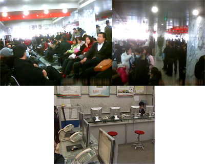 為了了解過戶的實際情況,記者采用了隱蔽拍攝的方式。在朝陽區(qū)房產交易中心記者看到,整個大廳到處都是排隊等待過戶和辦證的購房者。幾排座椅已經(jīng)坐滿了人,過道上和各個窗口都擠滿了人。有的人從早上5點就起來排號,在長時間的等待中,甚至都睡著了。由于怕錯過號,有的人到了吃飯時就隨便買點盒飯打發(fā),記者了解到,最近幾周來,這里都是人山人海。