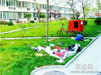 記者昨天上午11時(shí)趕到華龍?jiān)繁崩镄^(qū),發(fā)現(xiàn)小區(qū)門(mén)口沒(méi)有一個(gè)保安,任何人都可以隨便進(jìn)出小區(qū)。更意外的是小區(qū)里很少見(jiàn)到垃圾桶,草坪上隨處可見(jiàn)居民亂扔的垃圾。