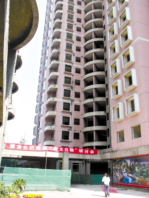但對于阿斌來說,有人的麻煩比他更大。麓景臺的大部分小業(yè)主都是通過銀行按揭供樓,面對遲遲不能入住的爛尾樓,還要每個月背負高額貸款,內(nèi)心的折磨無以言表。在無可奈何的情況下,不少業(yè)主只能打官司自救。阿斌說,一些業(yè)主聯(lián)合起來狀告開發(fā)商故意爛尾,后經(jīng)過法院裁定,開發(fā)商敗訴,這些業(yè)主可以暫停還貸,同時還能保住房子。