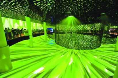 手指著一張沙特館的設(shè)計(jì)示意圖,王振軍說(shuō),對(duì)于沙特館而言,參觀者從廣場(chǎng)空間進(jìn)到等候空間再進(jìn)到主展廳,其實(shí)應(yīng)該再上到一個(gè)屋頂花園!斑@個(gè)花園本身設(shè)置有非常濃郁的阿拉伯風(fēng)情。在這個(gè)標(biāo)高18米的地方看所有展館,特別是A片區(qū),這里視野最好。觀眾看完展廳以后可以對(duì)整個(gè)上海世博會(huì)有一個(gè)鳥(niǎo)瞰,這是我們當(dāng)中設(shè)計(jì)的時(shí)候一個(gè)重要的亮點(diǎn),但現(xiàn)在很多朋友都說(shuō),體會(huì)不到這個(gè)感覺(jué)。希望今后有機(jī)會(huì),可以讓游客從室外再到室內(nèi),再到園區(qū)內(nèi)第二標(biāo)高的城市空間,來(lái)全方位體驗(yàn)、感受阿拉伯文化的魅力。 ”(楊冬)