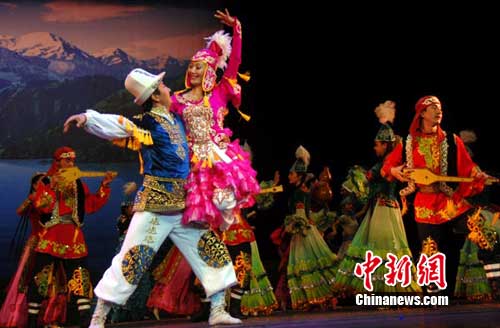 中新網(wǎng)烏魯木齊9月21日電(孫亭文 吳卓雅)上海世博會將于9月26日至30迎來新疆周。21日,世博會新疆周開幕式文藝演出節(jié)目在烏魯木齊進(jìn)行“彩排”,素有“歌舞之鄉(xiāng)”之稱的新疆,民族歌舞進(jìn)世博自是首選節(jié)目。