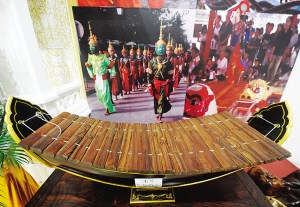 在香通寺模型周圍,還有形式多樣的展品,如當?shù)靥厣你~鑼、木琴、名貴紅木手工藝品、現(xiàn)場制作的稻香咖啡等。