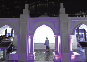 走進(jìn)展館,仿佛置身于首都巴庫(kù)的老城區(qū)——內(nèi)城。阿塞拜疆是人類最古老的定居地之一,巴庫(kù)古城至今完整保留著修建于12世紀(jì)的汗王宮殿建筑,被稱為“內(nèi)城”,擁有迷宮般的狹窄巷道,景致如畫(huà)。