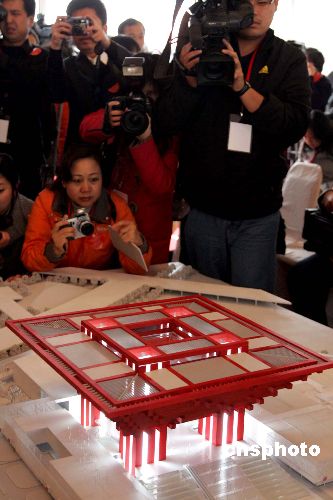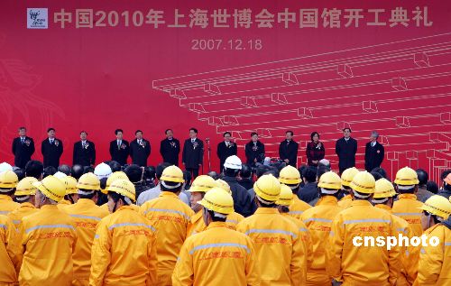 十二月十八日,凝聚全球華人智慧的中國二0一0年上海世博會中國館在上海黃浦江畔舉行開工典禮。據(jù)介紹,作為上海世博會的永久性場館之一,總用地面積為六點(diǎn)五二公頃,總預(yù)算十五億元人民幣。整個中國館區(qū)由國家館、地區(qū)館、港澳臺館等三個部分組成。中新社發(fā) 潘索菲 攝