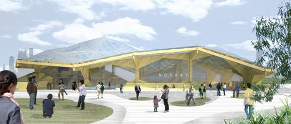 在上海世博會(huì)期間,挪威將在世博浦東園區(qū)C片區(qū)建設(shè)占地3000平方米的自建館。挪威此次以“挪威•大自然的賦予”為主題參展上海世博會(huì),展館將由15棵巨大的“樹”構(gòu)成,模型樹的原材料來(lái)自木頭和竹子,并可在展后再利用,充分體現(xiàn)了 “可持續(xù)發(fā)展”的理念。