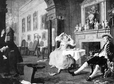 首先惹禍的是幾幅油畫(huà)作品。英國(guó)畫(huà)家威廉·霍加斯的著名作品《時(shí)髦的婚姻》在當(dāng)時(shí)被展出,這組畫(huà)共有6幅:訂婚、時(shí)髦婚姻、求醫(yī)、音樂(lè)會(huì)、決斗、自殺。正是這一組帶有強(qiáng)烈批判意義的畫(huà)引發(fā)了上流社會(huì)的不滿和爭(zhēng)議,紅衣大主教更是大發(fā)雷霆,下令禁士教士、學(xué)校校長(zhǎng)和家長(zhǎng)前去參觀,這件事在當(dāng)時(shí)也鬧得沸沸揚(yáng)揚(yáng)。