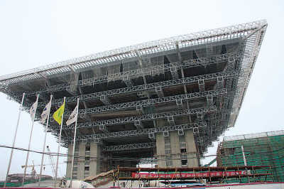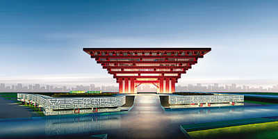 中國國家館以“東方之冠”為構思主題,取自中國古代木結構建筑中的元素——斗拱。16字設計理念體現(xiàn)了中國文化的深厚積淀:“東方之冠,鼎盛中華,天下糧倉,富庶百姓”。主色調運用傳統(tǒng)、沉穩(wěn)的“故宮紅”。世博會期間,中國館將展現(xiàn)一幅宏偉的城市文明圖。