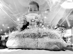 一塊長(zhǎng)滿“白發(fā)”的石頭,近日亮相上海海洋水族館,落戶“生物進(jìn)化科普展”。石頭的“毛發(fā)”是一種名為頭盤(pán)蟲(chóng)的原始海生動(dòng)物。頭盤(pán)蟲(chóng)長(zhǎng)30至40厘米,身體構(gòu)造為含甲殼素的纖細(xì)管狀體,以微小生物為食。上海世博會(huì)布展將挑選百塊“世博極品石”,“白發(fā)石頭”是被選中的一塊。孫中欽 攝影報(bào)道