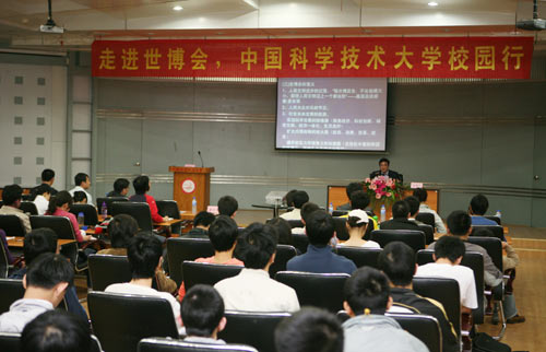 作為中國(guó)2010年上海世博會(huì)安徽宣傳周的重要活動(dòng)——“中國(guó)的機(jī)遇、世界的盛會(huì)”世博主題講座在中國(guó)科技大學(xué)開(kāi)講。上海世博局國(guó)內(nèi)參展顧問(wèn)、世博會(huì)宣講團(tuán)專家黃耀誠(chéng)系統(tǒng)地介紹了世博會(huì)的歷史和舉辦意義,并著重介紹了上海世博會(huì)的籌備情況。