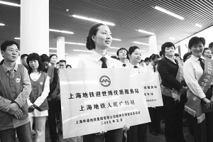 今天上午,上海地鐵命名首批“迎世博”先進(jìn)及志愿服務(wù)隊標(biāo)兵,命名儀式在人民廣場站換乘大廳舉行。