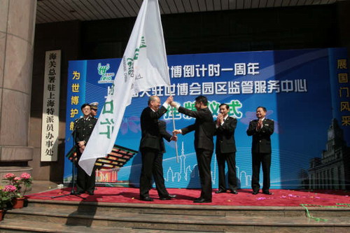 5月6日消息:5月1日,上海海關(guān)舉行迎世博倒計時一周年“上海海關(guān)駐上海世博會園區(qū)監(jiān)管服務(wù)中心”掛牌儀式暨“為世博護(hù)航,展國門風(fēng)采”文明服務(wù)宣誓活動。上海市政府副秘書長、上海市迎世博600天行動窗口服務(wù)指揮部常務(wù)副指揮沙海林和上海海關(guān)副關(guān)長于申共同為上海海關(guān)駐上海世博會園區(qū)監(jiān)管服務(wù)中心掛牌。沙海林向上海海關(guān)授予“迎世博、窗口行”行動旗幟,并向上海海關(guān)迎世博優(yōu)質(zhì)服務(wù)示范員代表頒發(fā)胸牌。