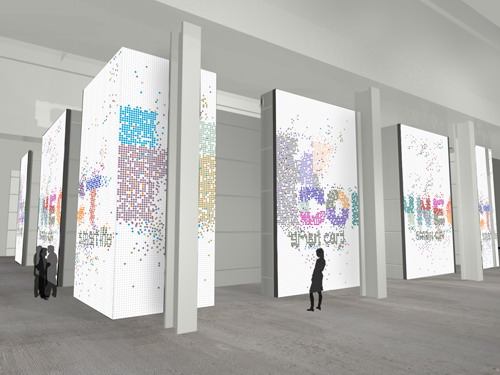 香港案例展覽結(jié)構(gòu)高6米,占地約530平方米。展覽結(jié)構(gòu)的光滑外墻會顯示動畫影像,影像隨著參觀人流的模式而轉(zhuǎn)變。每個影像點(diǎn),代表著一名進(jìn)入展覽場地或?yàn)g覽網(wǎng)上展覽的參觀者。參觀者進(jìn)入展覽后,便仿如置身于充滿動感的影片當(dāng)中。